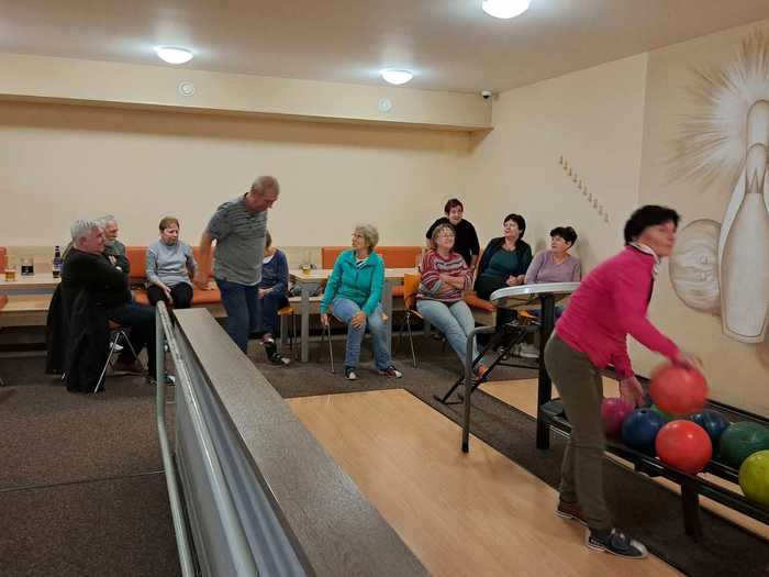 Při plánování našich listopadových akcí jsme se rozhodli i pro bowling. Tentokrát jsme ale nenaplánovali Studénku, ale rozhodli jsme se navštívit Sportoviště Bílov. Vyrazili jsme v dosti hojném počtu (12 seniorů) a díky ochotným řidičům jsme se pohodlně dopravili auty do Bílova. Tam jsme si nejen zahráli naši oblíbenou hru, ale také jsme využili toho, že součást sportoviště je i restaurace. Po úporném sportování jsme si objednali výborné pizzy a nějaké občerstvení. Zábava byla skvělá, jak konečně vždy, když společně někam vyrazíme.