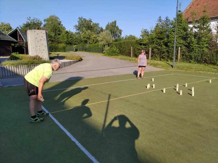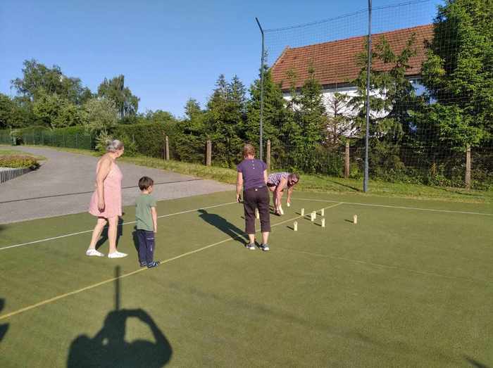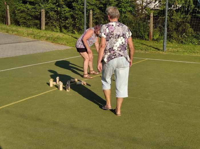 Ve čtvrtek 29. června jsme se opět sešli v naší klubovně, tentokrát ale s netradičním programem. Vzhledem k tomu, že se naše klubovna nachází v turistické ubytovně, bylo jen otázkou času, kdy se tam ubytují turisté naší věkové kategorie. Přijeli ze tří vesnic u Opavy a jejich cílem bylo blíže poznat naše krásné okolí. Při našem tradičním čtvrtečním setkání došlo i na seznámení s těmito turisty. Ti nám zazpívali jejich hymnu, seznámili nás se svou historií od vzniku založení, zmínili se i o aktivitách, které společně podnikají. Setkání pokračovalo na hřišti u 53, kde jsme si společně s našimi hosty zahráli Molkki. Setkání se vydařilo. Doufáme, že stejné pocity vládly i u našich hostů.