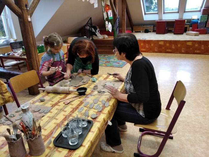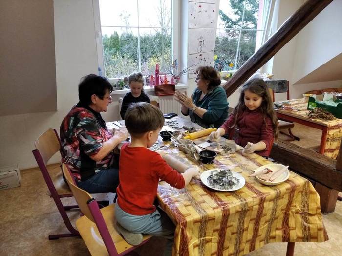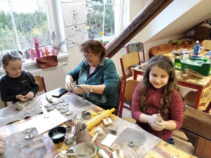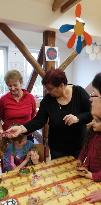 Ve čtvrtek 24.3. Jsme se opět sešly v naší základní škole, abychom si vyzvedly již hotové keramické výrobky a vytvořily nové. Tentokrát jsme si zvolily téma Velikonoc. Samozřejmě nechyběla naše vnoucata, která nás svou fantazii v mnohém inspirovala.