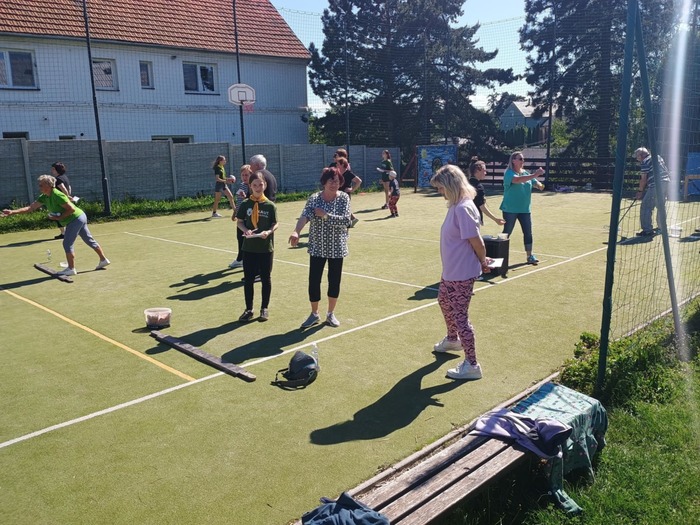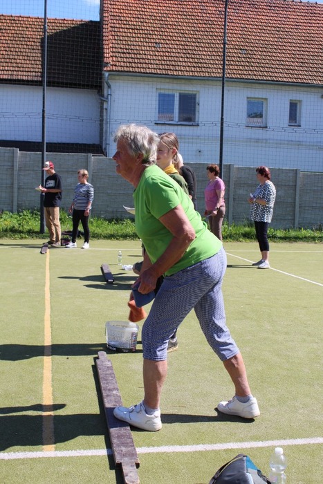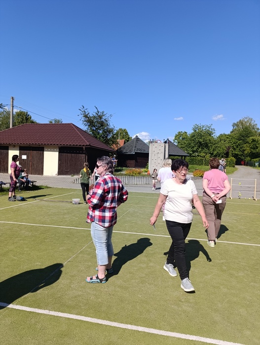 Stalo se již tradicí, že se v květnu setkají senioři na sportovním klání. Tak tomu bylo i letos. 25. května jsme se sešli v poměrně hojném počtu (18 soutěžících), abychom soutěžili v různých disciplinách jako košíková, lukostřelba, hod kroužky, hod míčky apod. (Podrobný seznam disciplín viz obrázky). Soutěžilo se ve dvou kategoriích, do 70 (10 účastníků) a nad 70 let (8 účastníků), tentokrát ve společných kategoriích muži - ženy. Na prvních třech místech v mladší kategorii se umístili Jarka Silberová (1. místo), Eva Žižková a Blanka Olšovská. V kategorii starších Lidka Dybalová ( 1. místo), Stáňa Myška a Jarka Huvarová. Všem vítězům blahopřejeme a doufáme, že nás budou dobře reprezentovat i na oblastní soutěži Hry bez venkovských hranic. Je třeba poděkovat i místním skautům, kteří dohlíželi a bodovali jednotlivé disciplíny, naším důchodkyním, které se postaraly o bohaté občerstvení a Radku Závalovi, který se nám zpříjemnil chvíle po soutěži hrou na kytaru. Počasí nám přálo a my můžeme jen konstatovat, že se akce velmi vydařila a prožili jsme krásné nedělní odpoledne.