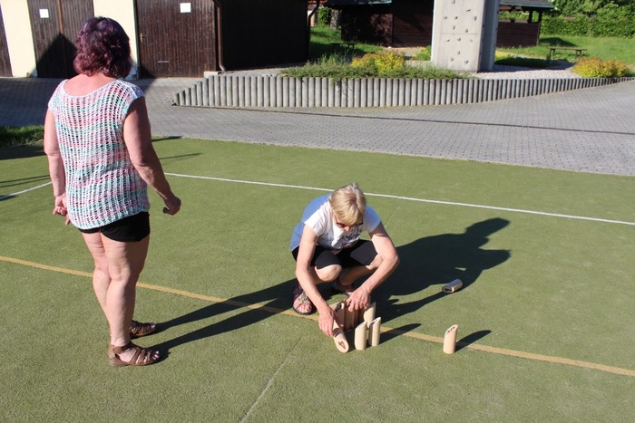 Ve čtvrtek 25.5. jsme se sešly v naší klubovně, přesněji na hřišti u 53. Čekal nás nácvik nových venkovních her, a to Petangu (ten nám ještě moc nejde, musíme si osvojit pravidla) a hry s tajemným názvem Molkky. Krásná hra, zajímavá a hlavně hodně zábavná. Nasmály jsme se u toho a rozhodly se v nácviku těchto her pokračovat i další týden.